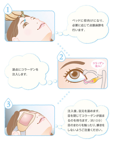 治療後は、通常通りの洗顔や入浴が可能です。注入されたコラーゲンは時間が経つと少しずつ分解または排出されていきます。